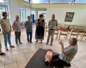 Dank eines versierten Lehrers für Fachpraxis Gesundheit und Pflege (an der BBS Westerburg) in den „eigenen Reihen“, Baukirchmeister Markus Koch, gab es bereits eine erste Schulung für haupt- und ehrenamtlich Aktive in der Gemeinde aus Leitungsgremium, Gruppen und Chören.