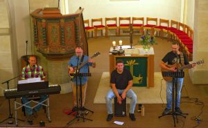 In heimatverbundener Sprache, gewohnt herzlicher Art, musikalisch top und mit ihrer mitreißenden Frömmigkeit gestaltete erneut die Band HOPE 50,15 aus Daaden und Umland einen wunderbaren Gottesdienst in der Birnbacher Kirche. Der gute Ruf der „Doarer Jongs“ hatte sich offenbar rumgesprochen und nicht nur „Altfans“ kamen.