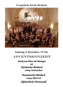 Am Samstag, 9. Dezember, 19 Uhr (Vorabend zum 2. Advent) gab es in der Birnbacher Kirche wieder ein festliches Adventskonzert (u.a. mit Kirchenchor und Posaunenchor). MEHR->