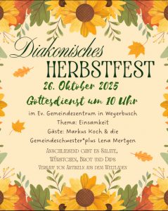 Bei noch sommerlichen Temperaturen blicken wir dennoch auf den herannahenden Herbst – und somit auf unseren traditionellen Diakonie–Sonntag, diesmal am 26. Oktober!